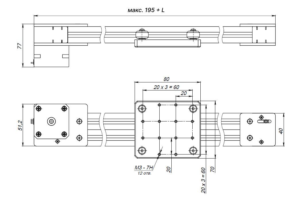 - Перемещение каретки на 1 оборот вала двигателя,мм: 40